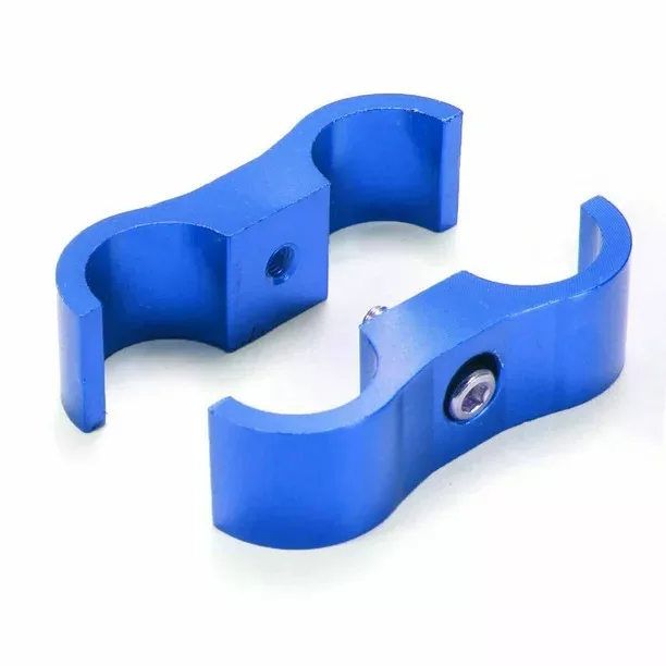 This high-quality AN12 Dual Hose Spacer / Line Separator is designed for securing 27mm hoses and cables. Made from high-quality CNC billet aluminum, it features a blue anodized coating for corrosion resistance and long-lasting durability. Ideal for organizing and securing oil, fuel, or water hoses, keeping them protected from moving engine parts while ensuring a clean, professional look.