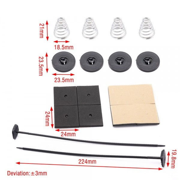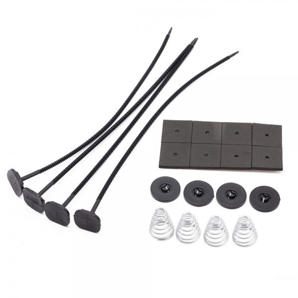 - Contents: mounting rods, foam protective pads, springs, retaining clips