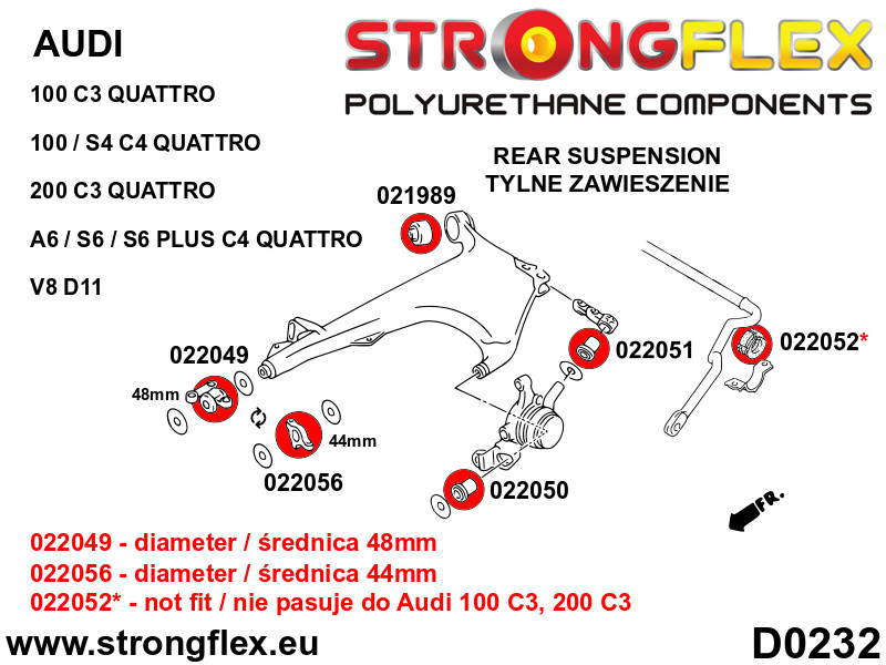 • This bush is only available in 90ShA hardness (yellow) because the original rubber bush is made of a hard rubber compound. The use of the 80ShA hardness bush (red) will reduce the driving of the car to the original rubber bush.