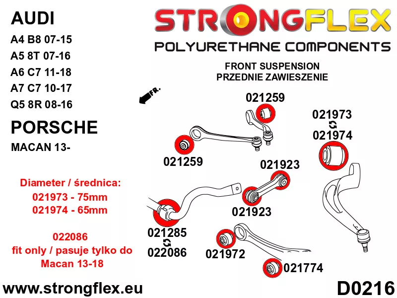026265A: Full suspension polyurethane bush kit SPORT 29mm 19,5mm 021974 - 65mm Yellow