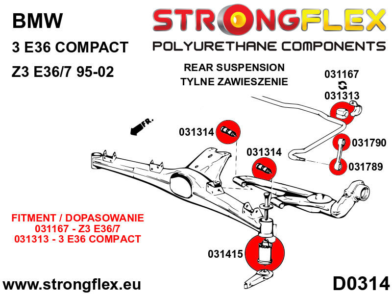 Depending on the model, the bushing fits the front and/or rear suspension.