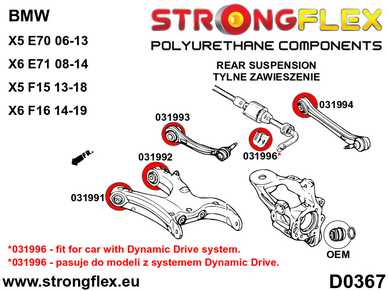 • The 031996 bushing only fits models with the Dynamic Drive system. For models with a conventional stabilizer, select 031995.
