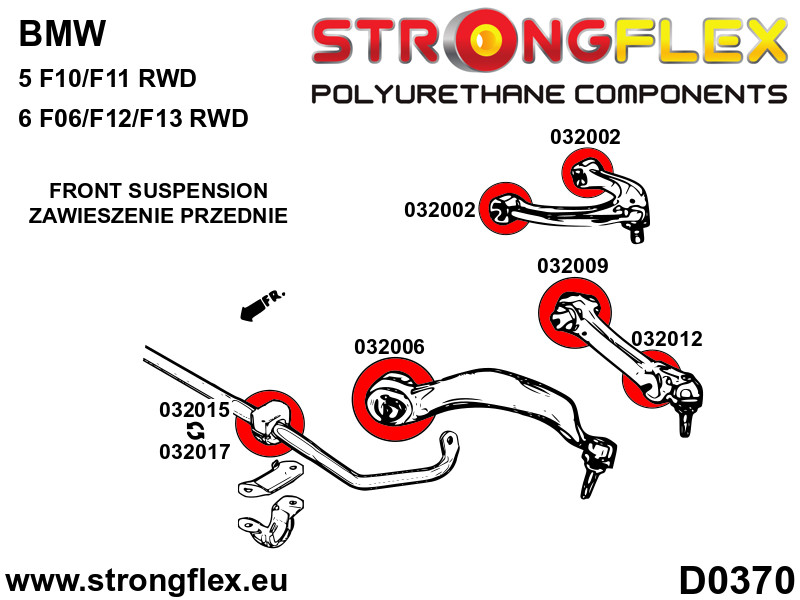 • This bush is only available in 90ShA hardness (yellow) because the original rubber bush is made of a hard rubber compound. The use of the 80ShA hardness bush (red) will reduce the driving of the car to the original rubber bush.