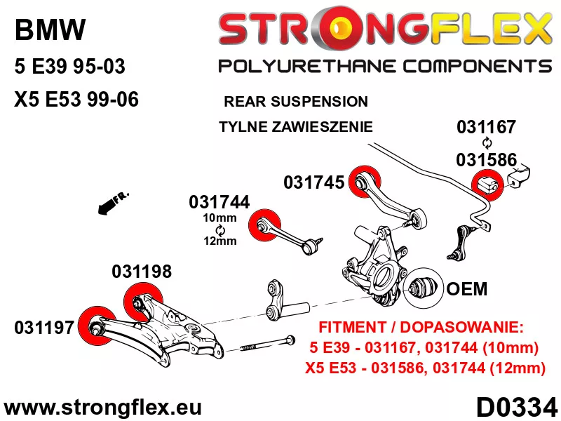 036112A: Rear lower trailing arm bush kit SPORT 10mm 14mm Yellow