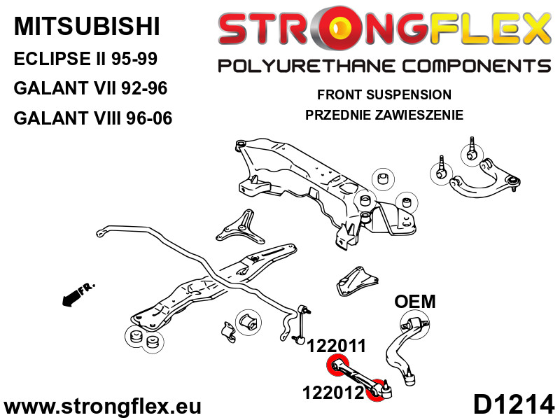 • This bush is only available in 90ShA hardness (yellow) because the original rubber bush is made of a hard rubber compound. The use of the 80ShA hardness bush (red) will reduce the driving of the car to the original rubber bush.