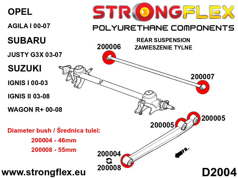 • 2x 200004B: Rear trailing arm bush - front 46mm