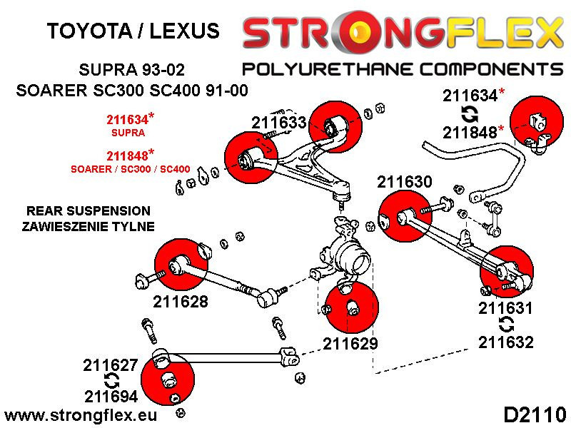 4 x 211633A Rear upper wishbone bush SPORT- 2 x 211634A Rear anti roll bar bush SPORT