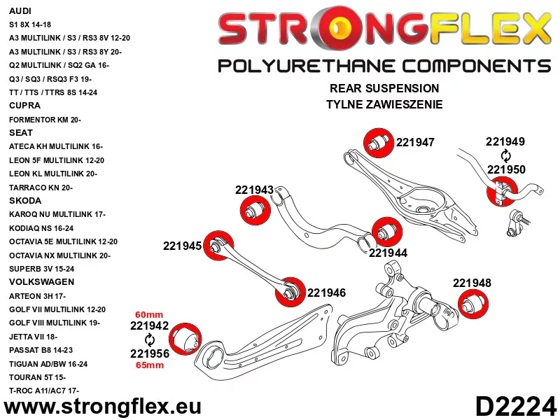 226240B: Full suspension polyurethane bush kit 20mm Custom 221950 Red