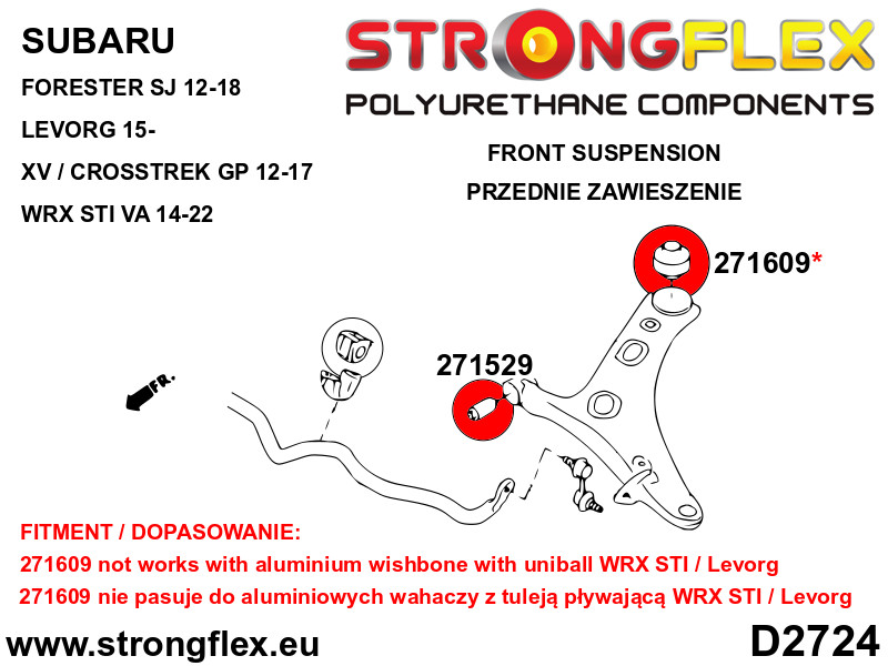 • The bush does not fit aluminum wishbones with uniball bush Levorg / WRX STI after 2011.