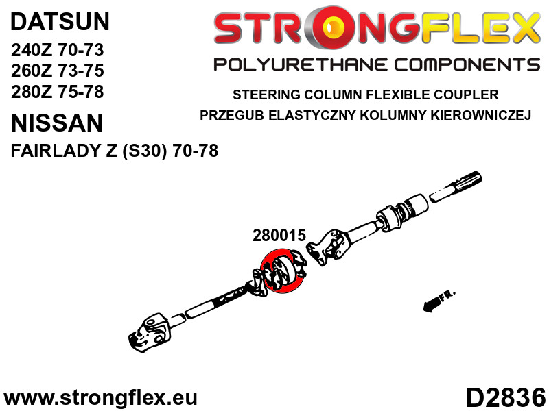 • This bush is only available in 90ShA hardness (yellow) because the original rubber bush is made of a hard rubber compound. The use of the 80ShA hardness bush (red) will reduce the driving of the car to the original rubber bush.