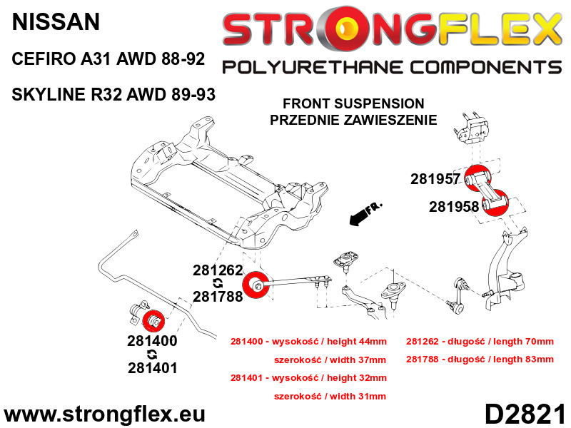 • Depending on the version, there are different stabilizer bushes 281400 / 281401, see photo S2806.