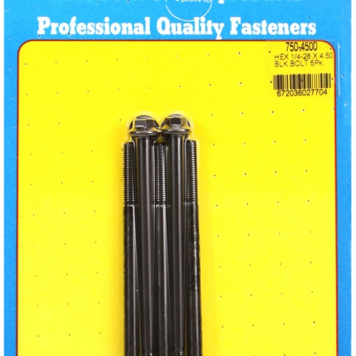 "1/4""-28 x 4.500 hex black oxide bolts" (5pcs)