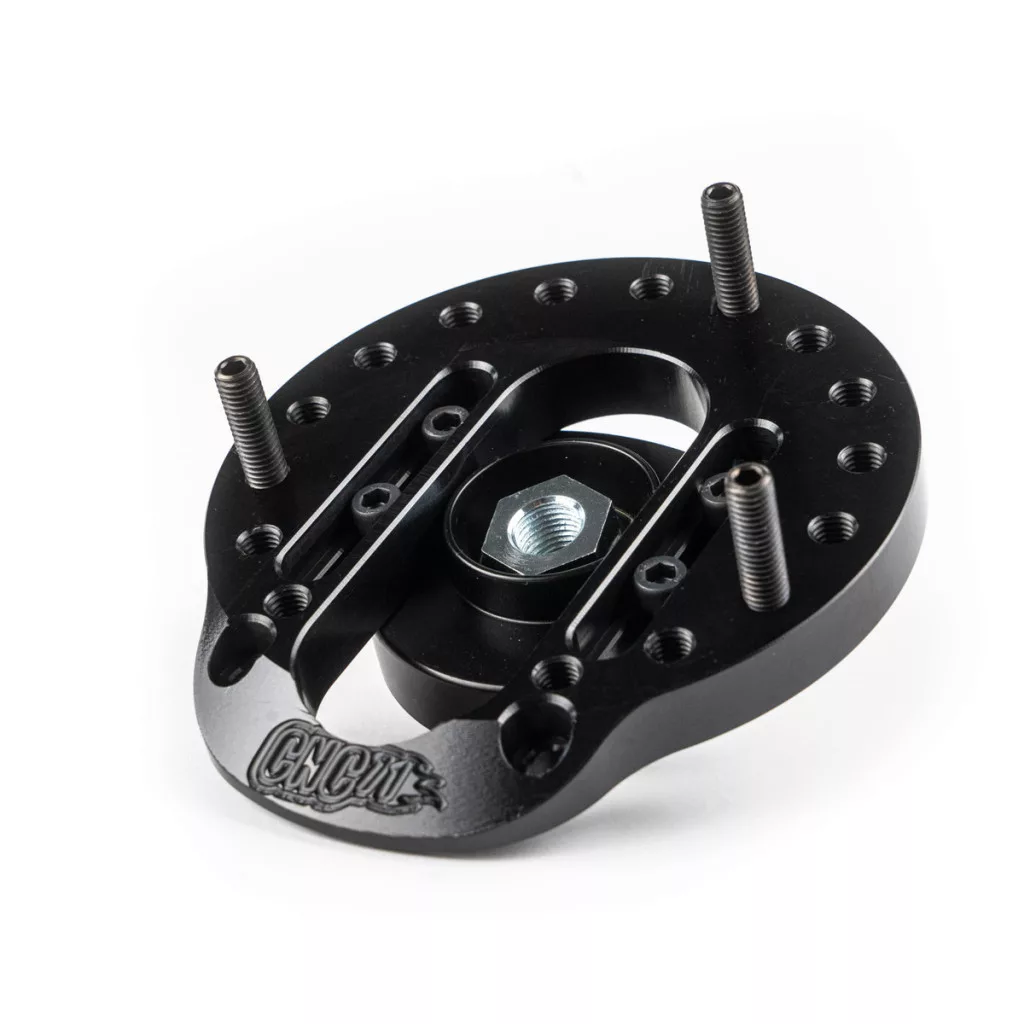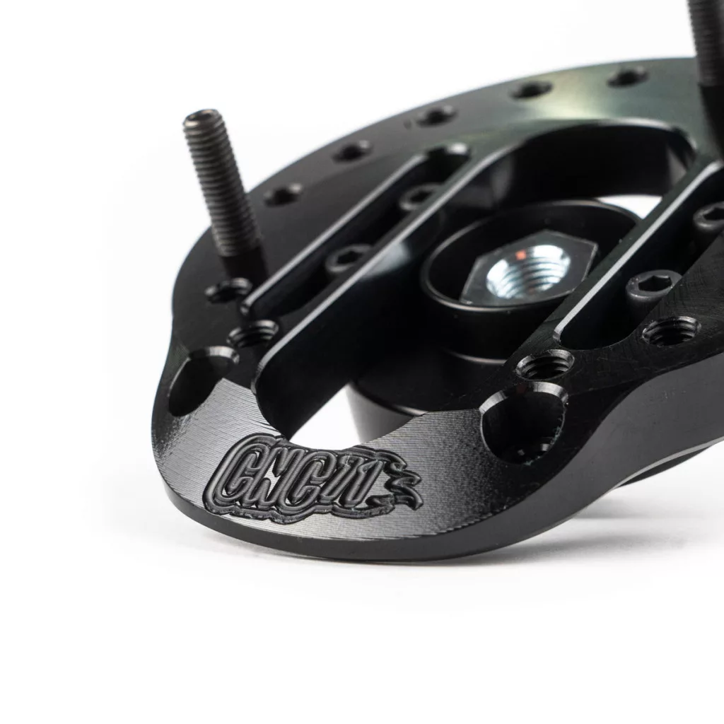 Camber plate for BMW E36/E46/E39/E8x/E9x model PRO - with increased range of adjustment designed by CNC71 Motorsport allows to adjust the camber and caster angle of the front wheel in a range of up to +/- 6 degrees from the serial position. This is the maximum that can be achieved without modifying the cup while maintaining adjustability.