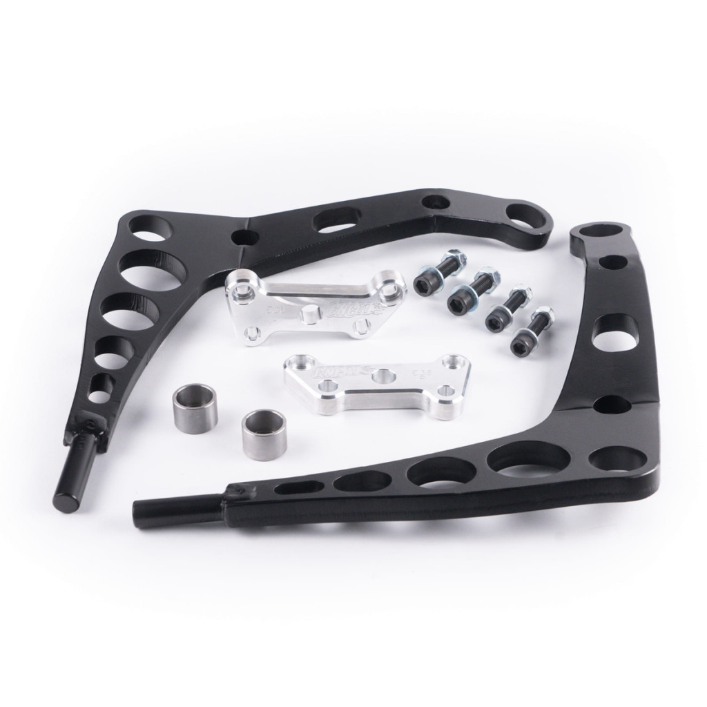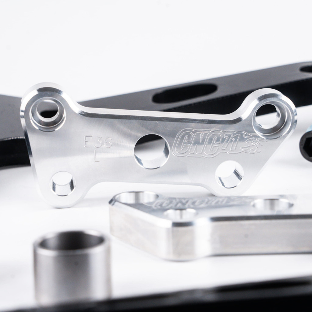Adapters are milled on CNC machines, which gives a high quality finish and 100% matching of the adapter to the steering knuckle and pin ends. For E36, the adapters are made of the hardest aluminum acc. To Polish standards. The control arm is cut with a laser and has precisely machined holes for pins and stabilizer mounting (we recommend its assembly for better driving of the car in skidding, especially when the suspension is not "concreted").
