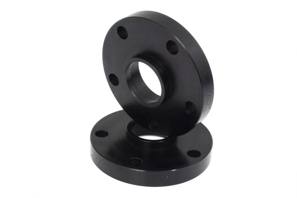 Our distancers are made of PA6 duralumin roller, which makes them very durable and lightweight at the same time, which makes them also great for riding on the track. Both the hole and the centering flange are created with a tolerance of up to 0.05 mm, which ensures accurate centering of the wheel and prevents the occurrence of vibrations on the steering wheel that occur when the rim is not properly aligned. Screwed on spacers are also made of duralumin with pressed knurled pins or steel threaded sleeves, which prevents thread breakage. Both pins and sleeves are secured against being pulled out when tightening the wheel by their two-stage shape. The advantage of the distances is the increase in the track width, thanks to which the car behaves better when cornering, and also looks better because the wheels are not hidden in the fenders. Thanks to the use of spacers, we can mount rims with other parameters such as larger offset (ET), because we level the difference precisely through the spacers. You can also use spacers that change the spacing of the bolts, which allows you to install rims from another car with the same number of fixing bolts.