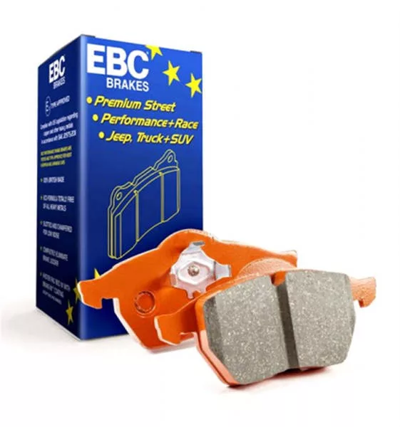 Klocki hamulcowe samochodowe ORANGESTUFF są nowym produktem firmy EBC, które zostały stworzone specjalnie do użytku torowego oraz wyścigowego. Ich niepowtarzalna okładzina cierna pozwala osiągnąć znakomity współczynnik tarcia na poziomie 0,5 wzrastający do 0,6. Orangestuff wzorowo przeszły ekstremalne testy przygotowane przez inżynierów EBC Brakes naprzykład : test hamowania na tarczach rozgrzanych do czerwoności gdzie wykazywały bardzo przyzwoity współczynnik tarcia. Produkt wyłącznie do zastosowań torowych bardzo agresywnie działający na tarcze hamulcowe.
