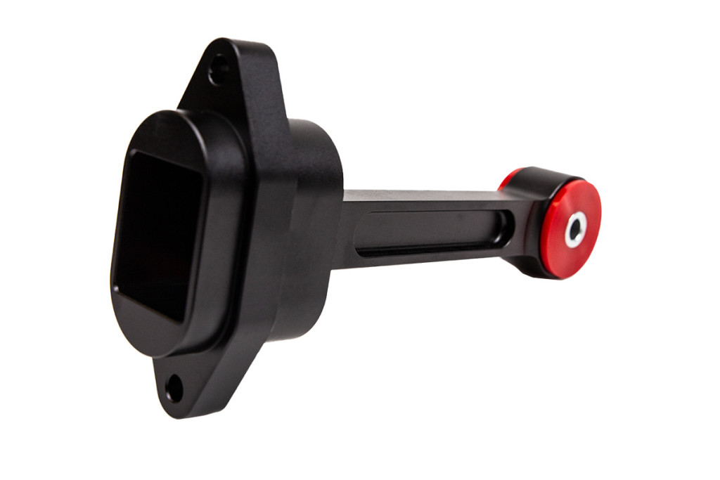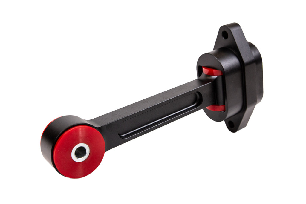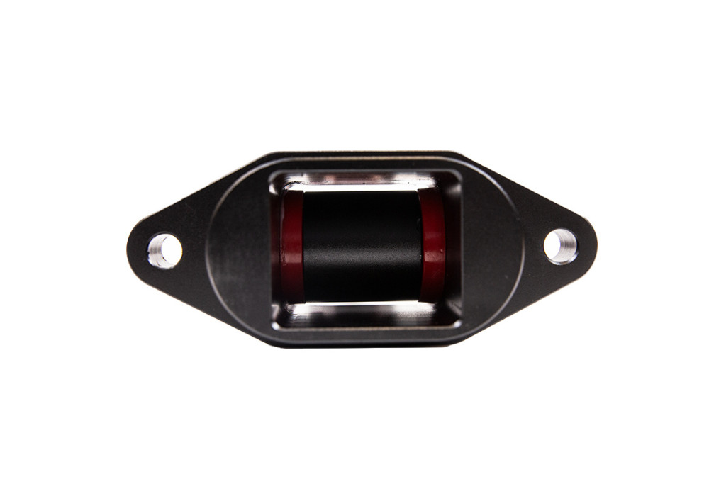 Designed to work with all inserts that use the factory engine mount, the “Dog Bone” mount is the final piece in improving engine mounts. - Eliminates traction loss - Made of lightweight 6061-T6 aluminum - Black anodized - 75A durometer bushings - Works with all “Dog Bone” foot inserts