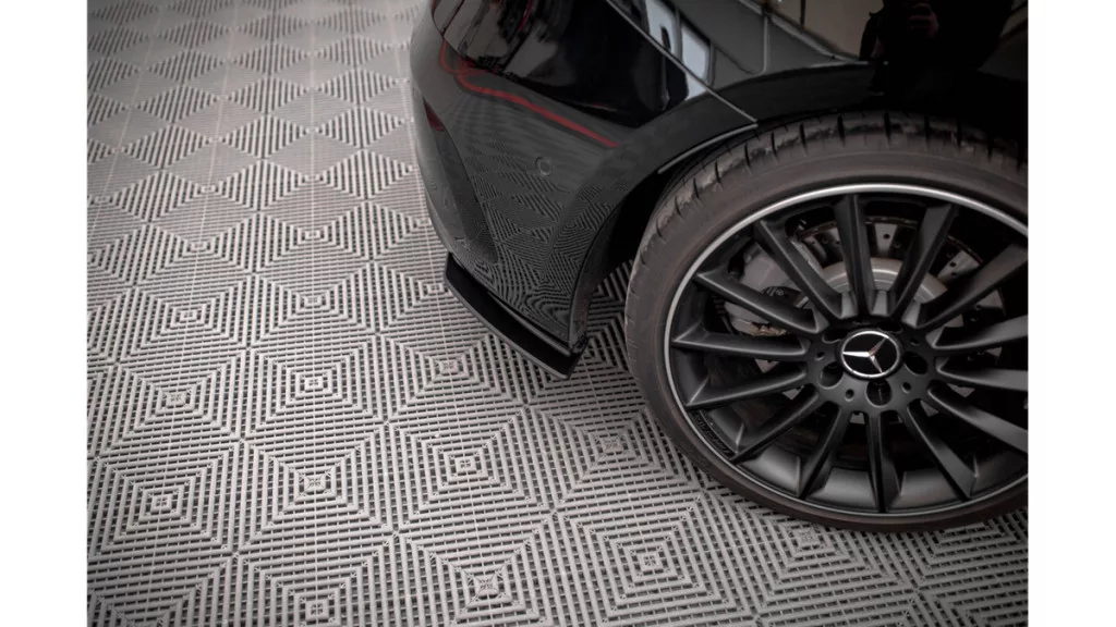 The rear diffuser Street Pro for the Mercedes A35 AMG Hatchback Aero Pack W177 is a tuning part in the tuning process that was made of ABS material. The mentioned material has an increased resistance to moisture and will not deform unsightly as a result of extremely low or high temperatures. ABS is a flexible and durable material that is certified by the TUV MATERIALGUTACHTEN certificate. Thanks to the mentioned properties, ABS is willingly used in the automotive industry, not only for the production of tuning parts, but also for standard car equipment.