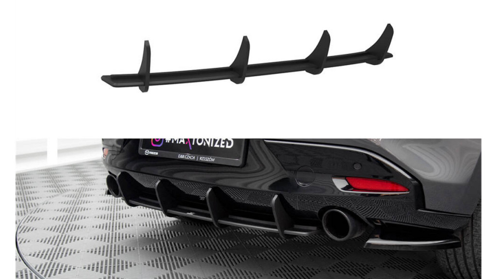 Are you the owner of the Mazda 3 Mk4 model and you looking for optical tuning elements that will give your vehicle a sporty look? All the parts you need to make this change you can find in the extensive range of the Maxton Design online store. The Polish company has been operating in the automotive industry since 2006 and specializes in the production of modern splitters, spoilers, bumpers, side skirts and other tuning accessories. Thanks to the products available in the offer, you can change the appearance of your car in a few moments and significantly improve its aerodynamics. The rear diffuser from the Street Pro collection for the Mazda 3 Mk4 will enrich the equipment of the car and give it a completely different character.