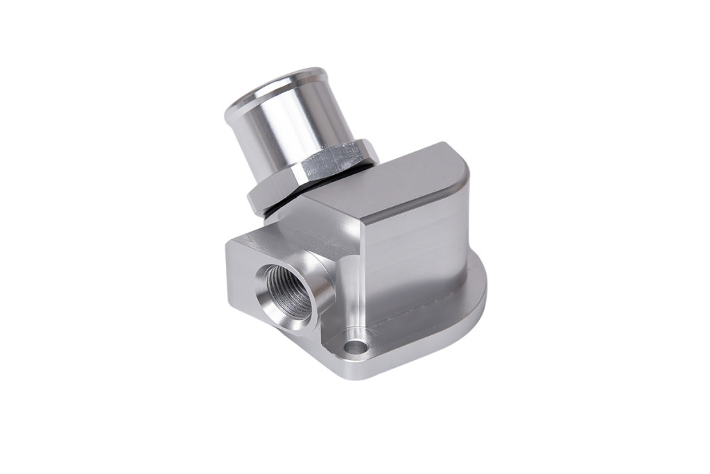Billet aluminum thermostat housing for Honda B and D series engines, designed for tuning and motorsport applications.