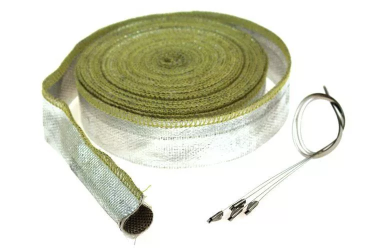 Heat shield for TurboWorks cables with the width given in the item name. Made of material and fiberglass. Provides excellent thermal insulation. Withstands temperatures up to 600 degrees. Price for 1mb. By buying larger quantities you get the cover in one piece.