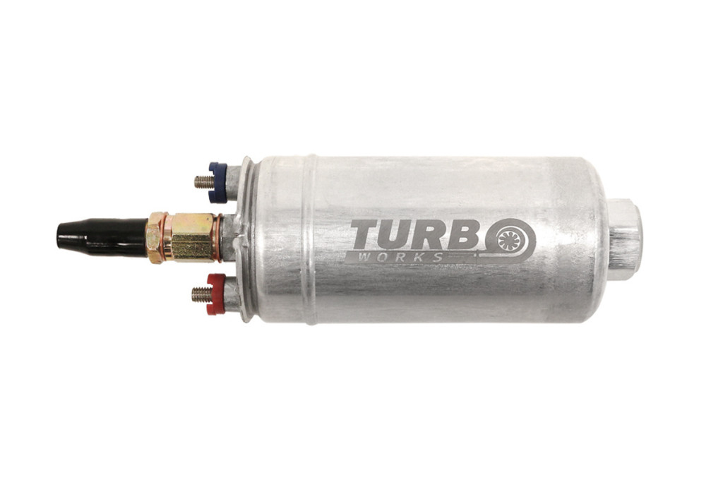 TurboWorks 044 external sports fuel pump with 300LPH performance.It can work individually or in series with an internal pump.Dedicated to 750 BHP in the case of naturally aspirated engines, and 650 BHP in the case of turbo.OEM: 0580 254 044Working pressure 6.5 BAR.Dimensions: