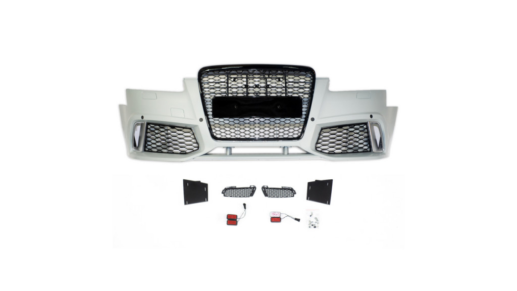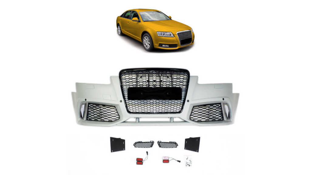 This sport bumper front with grille is designed for AUDI A6 C6 (4F) Sedan and Touring models, 2004-2011 model years.