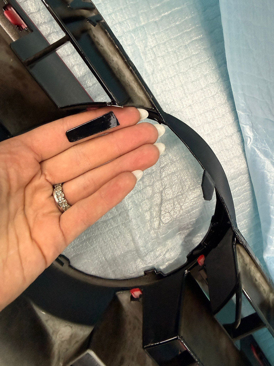 The glossy finish adds a modern touch to the front of Van models with the standard bumper version. The bold black color with the distinctive red trim is sure to enhance the overall aesthetic of the vehicle.