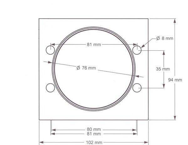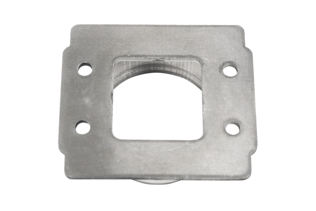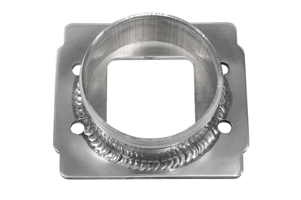 Adapter for connecting the 77mm inlet pipe to the flow meter. Made of aluminum, rubber gasket included