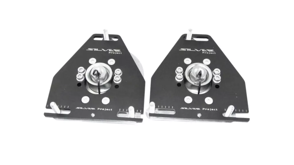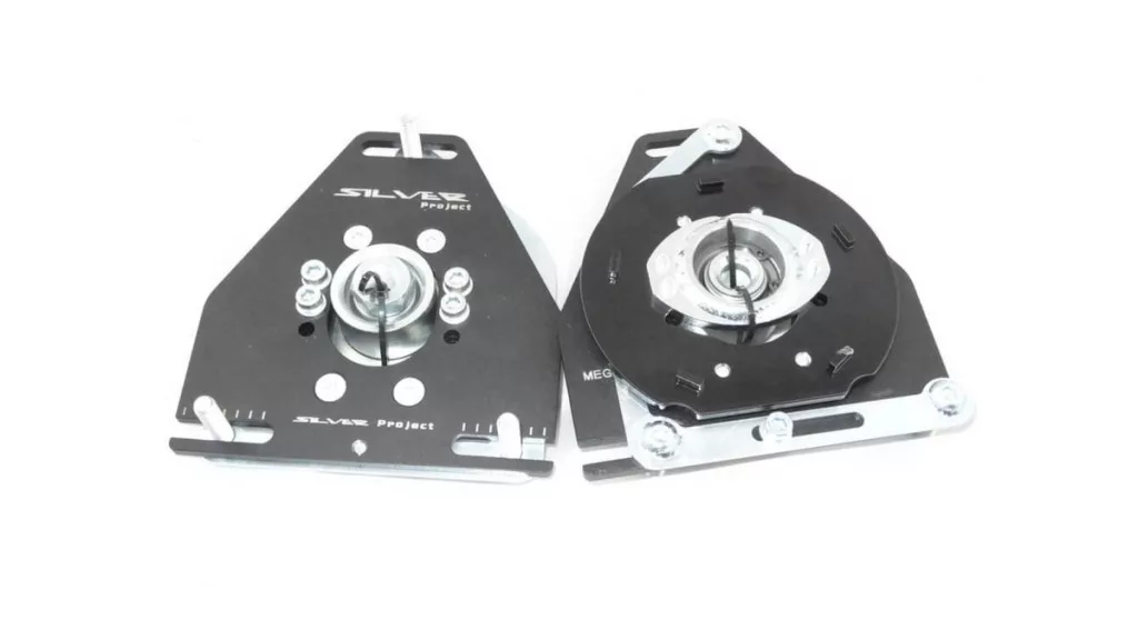 These camber plates allow you to adjust the wheel/shock absorber angle by several degrees, significantly improving grip during spirited driving, racing, and track days. They are equipped with Teflon-lined bearings, ensuring durability and precise handling.