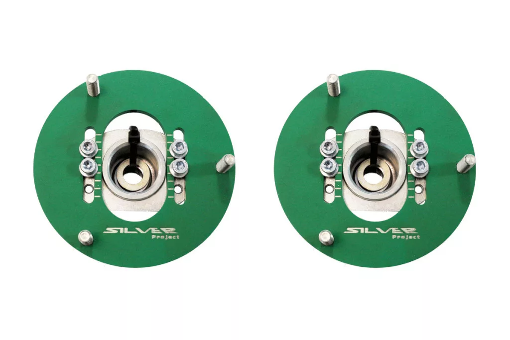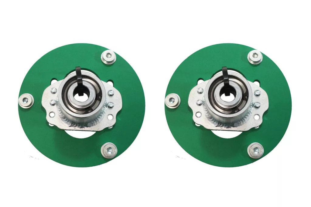 Front camber plates designed for BMW E36 and compatible with the OEM upper spring mount. They allow several degrees of camber adjustment, essential for drifting and performance driving where increased grip and sharper handling are required.