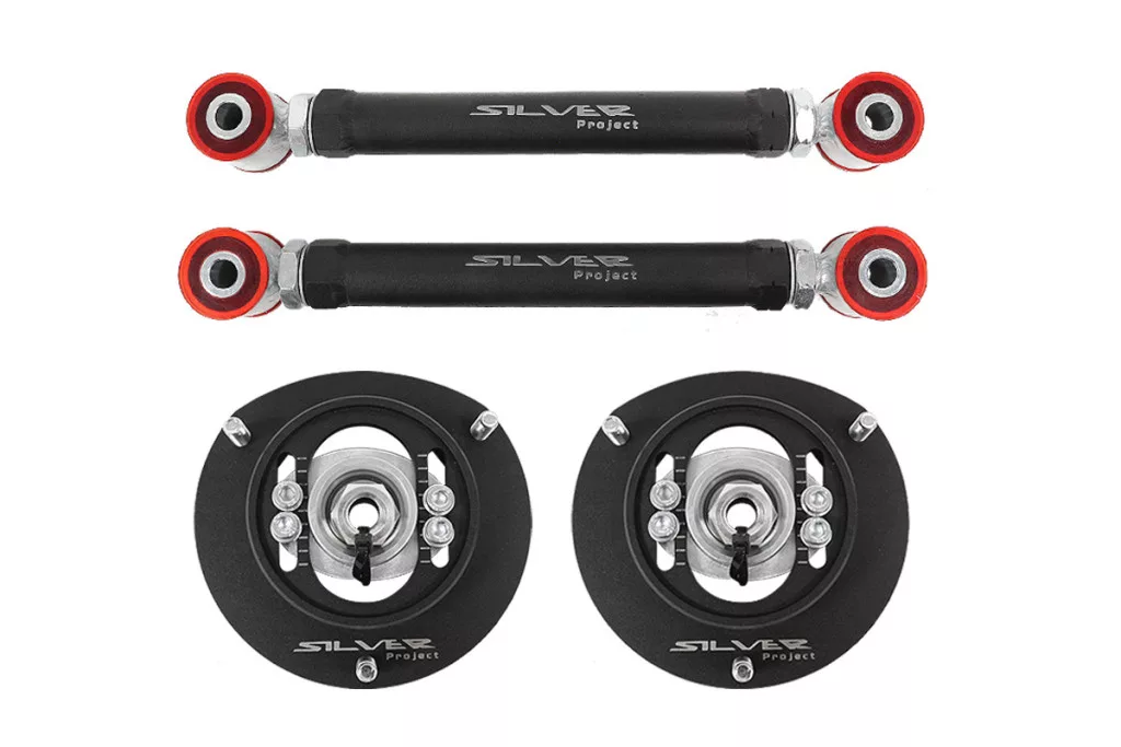 Sport Rear Control Arms with Polyurethane Bushings for MercedesHardness: 75ShAFeatures: all components zinc-plated and powder-coatedBenefits: after installation, more precise handling and adjustable wheel camber from +2° to -2°Purpose: suitable for daily driving and sport, ideal for those seeking maximum grip or replacing worn factory bushingsCamber Plates for MercedesBearings: with Teflon insertColor: matte blackComponents: zinc-plated and powder-coatedWheel camber adjustment: +1.5° / -1.5°Purpose: daily driving and sport usePrice: for a complete front and rear setFits models:Rear control arms: W124, W201, C-Class W202/W203, E-Class W124/W210, R129, R170Camber Plates: W124, C124 Coupe, C124, A124Recommended for: maximum grip, also recommended for sport and drifting