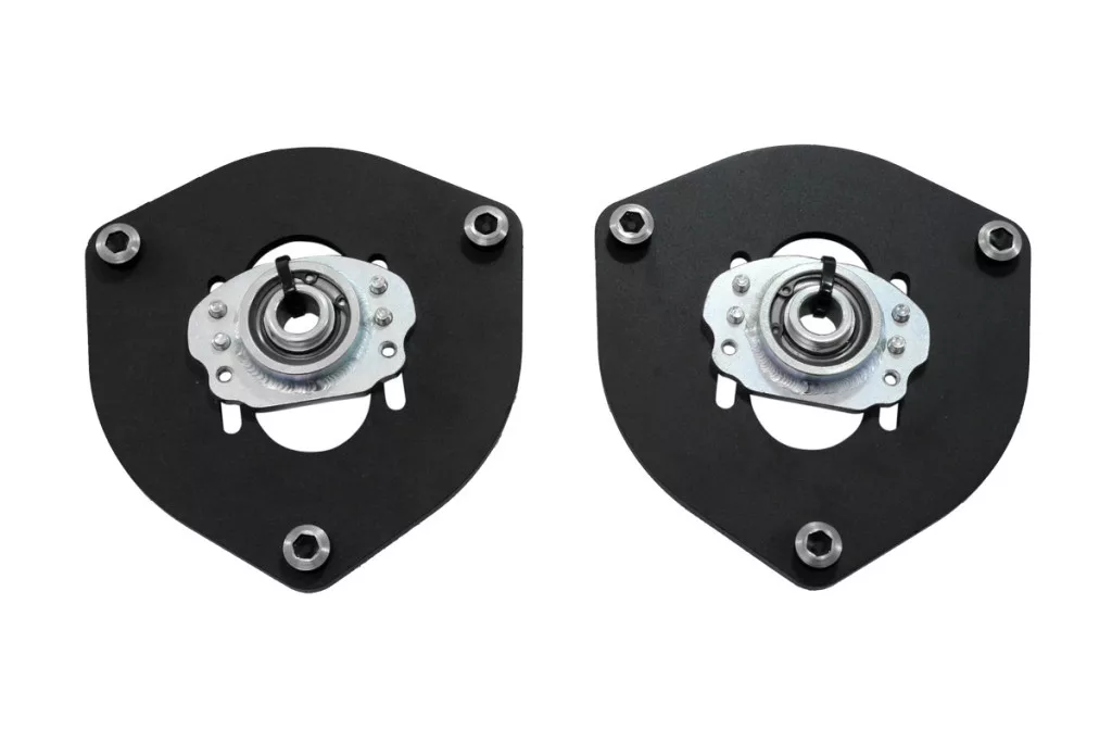 Simple installation: remove the stock strut top mount and fit the camber plates.